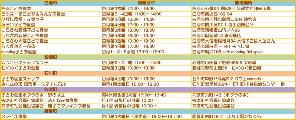 私たちは、福島県県南地域の未来を担う子どもこどもたちが、地域や家庭の経済状況に影響されることなく、安心できる安全な居場所を手に入れることを目的として活動しています。